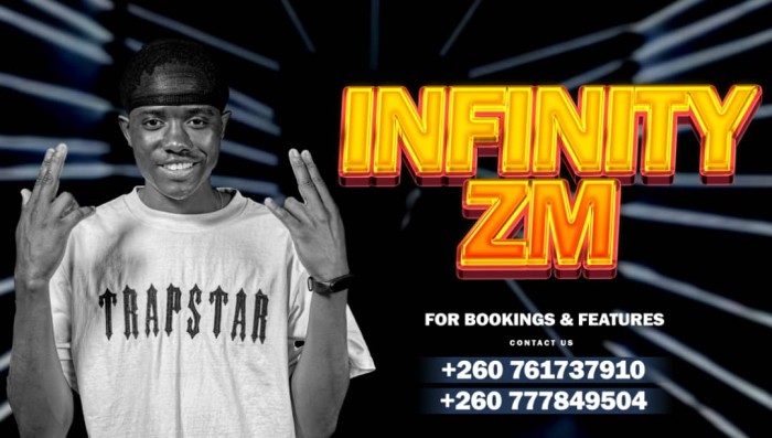 Infinity ZM is a rising artist from Chambishi, Zambia, who began his music career in 2019. Inspired by his deep love for music, he creates songs that reflect real-life struggles and experiences. Known for tracks like “Enough Is Enough” and “Ububi Bwa Muntu,” he has worked with Slick Boy and performed at the Copala Experience. Despite challenges such as lacking a platform, Infinity ZM remains determined to grow his career and make his family, manager, and promoters proud.